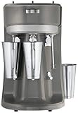 Durably built from heavy-duty, die-cast metal, this triple-spindle commercial drink mixer works great for everything from mixing ice-cream shakes to -inchesflashing-inches bar drinks to blending eggs or pancake batter. Mixing up to twice as fast, the appliance comes equipped with three powerful 1/3-horsepower motors that feature sealed, permanently lubricated ball bearings for long-lasting performance. Each motor works independently and has its own power switch, so two can be in use while cleaning the third. Plus, the motors have been individually balanced, which means minimized motor vibration. Controls include a three-speed rocker switch, plus a unique fingertip-action pulse switch that starts and stops each motor for maximum mixing control. Providing added versatility, the appliance offers two ways to start and stop the mixing action--with the pulse switch or the cup guide, which pulls out for easy cleanup in the dishwasher. Three 28-ounce stainless-steel mixing cups come included.